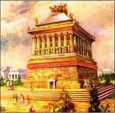 Quando Mausolo (nome que derivou "mausoléu"), rei provinciano do império persa, faleceu, sua esposa e irmã Artemísia II de Cária mandou construir uma grande tumba que guardasse seu corpo. Convocou os mais talentosos artistas gregos da época (seu marido e irmão era um admirador daquele povo), dentre eles o escultor Escopa, que supervisionara a última reconstrução do templo de Artemis em Éfeso, bem como os escultores Briáxis, Leocarés e Timóteo, e os arquitetos Sátiro e Pítis. Erguida no século IV a.C., possuía 45 metros de altura.